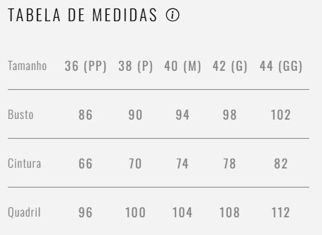 Não esqueça de conferir a tabela de medidas para encontrar o tamanho perfeito que realce seu look com charme e praticidade!